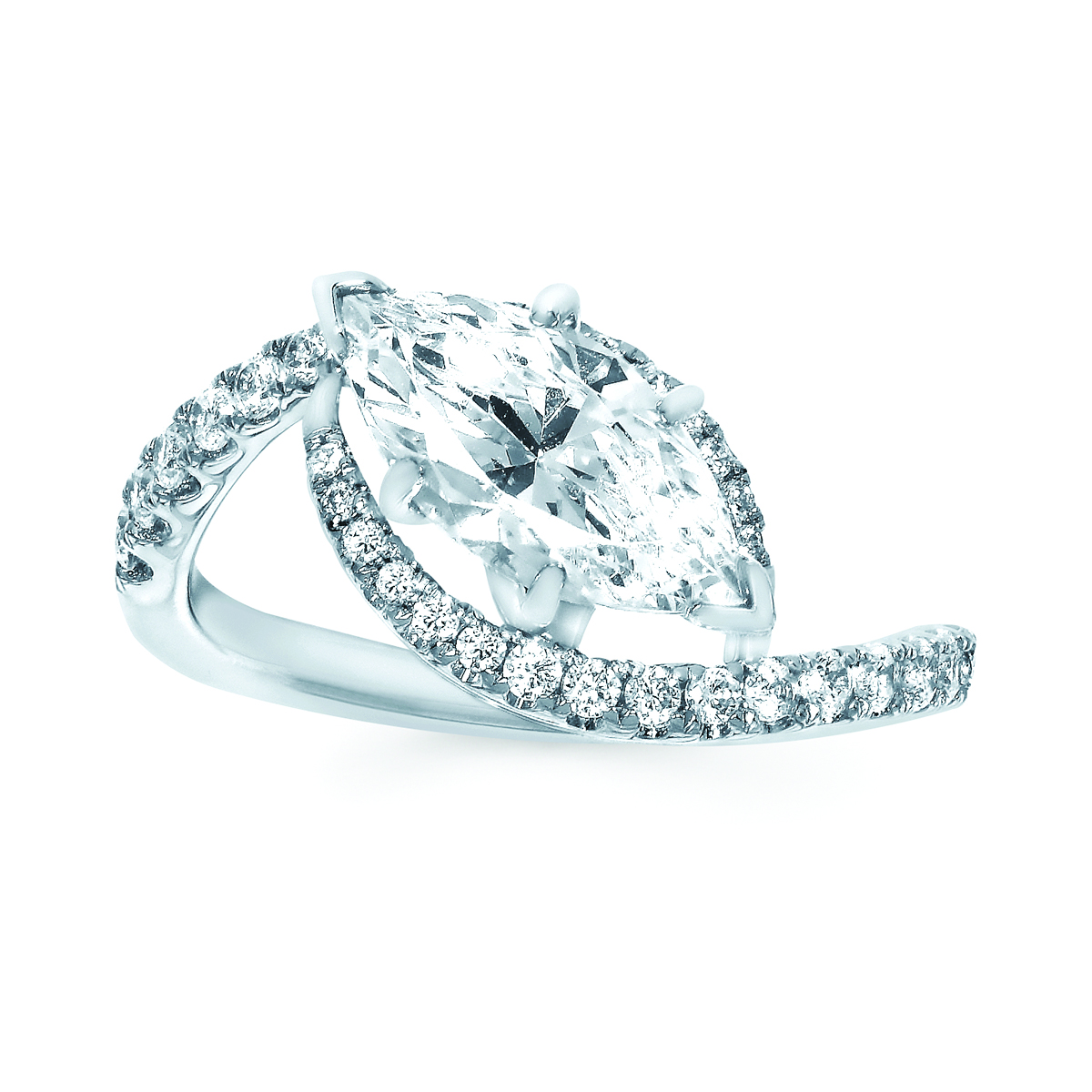 Engagement Ring Forever ElegantĀ® 1/3 Ctw. Diamond Semi Mount shown with 1 1/2 Ct. Marquise Center Diamond in 14K Gold