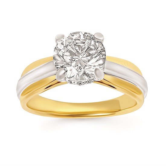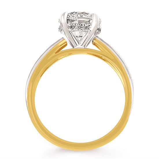 Engagement Ring Classic Bridal: 0.07 Ctw. Diamond Semi Mount shown with 2 Ct. Round Center Diamond in 14K Gold