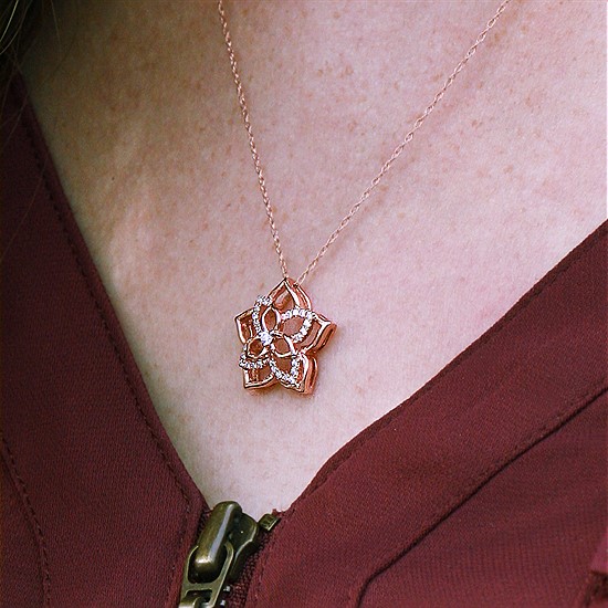 1/10 Ctw. Diamond Flower Pendant In 14K Gold With 18" Chain Flower